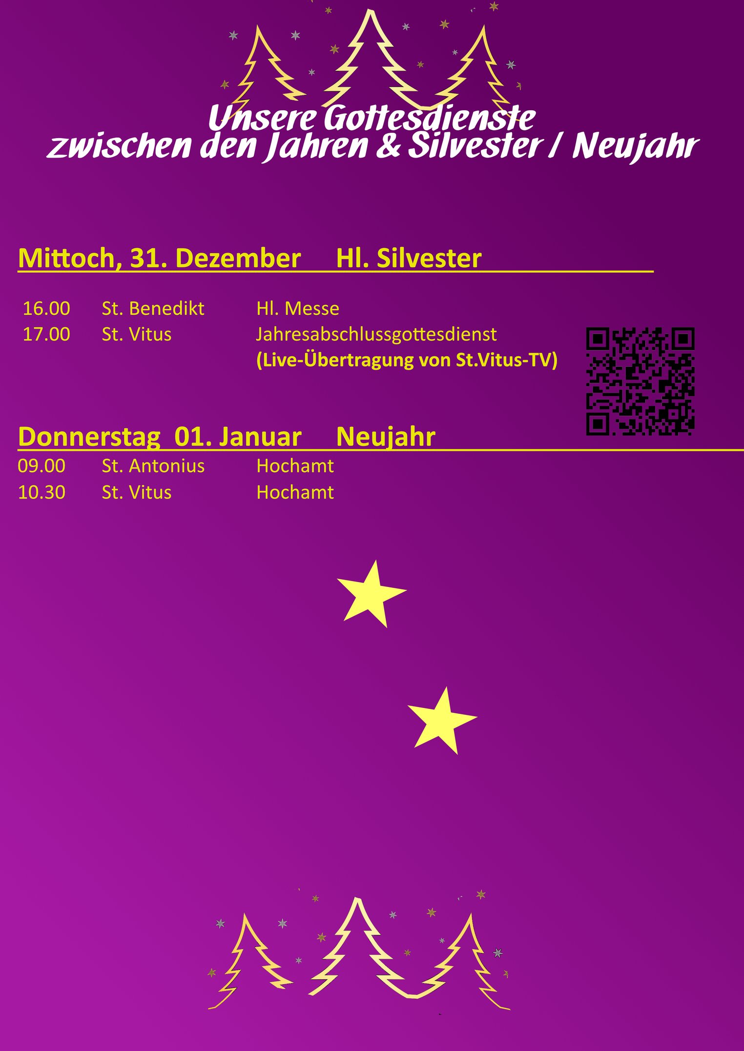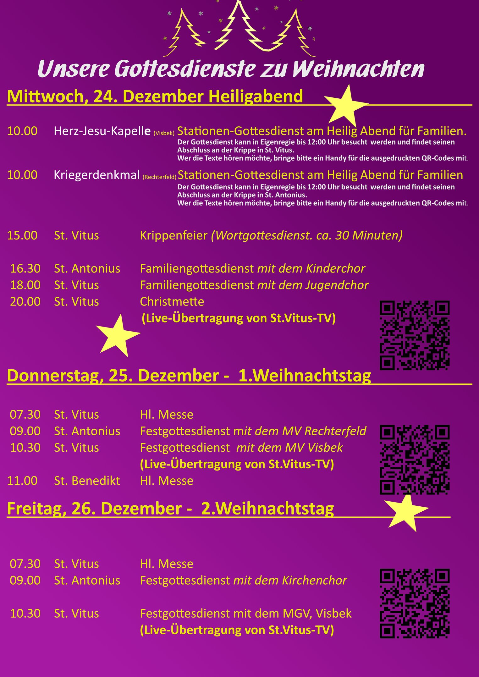 Gottesdienstübersicht Weihnachten 2025 bis Neujahr 2026
