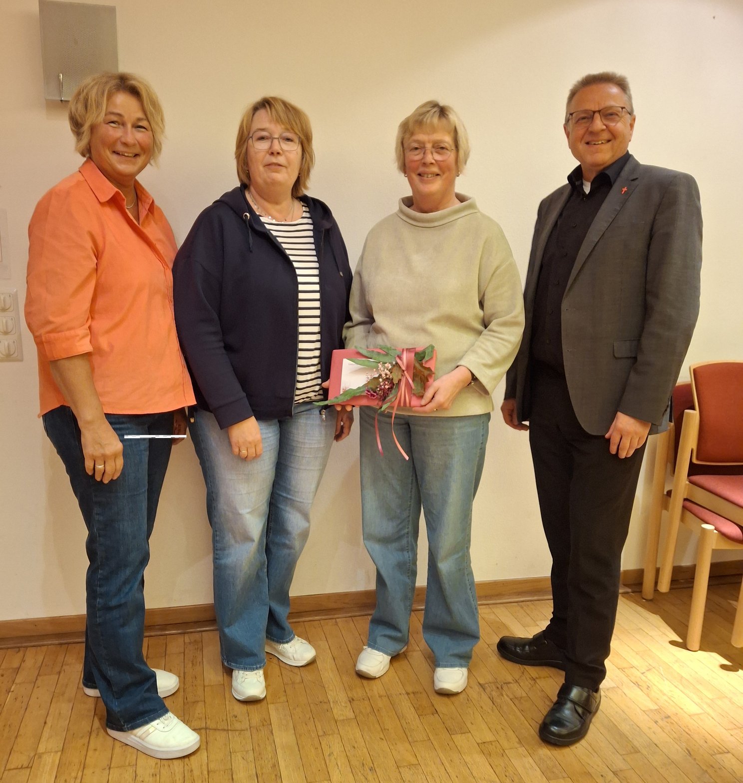 Auf dem Foto von links nach rechts Christel Kellermann (1. Vorsitzende), Brigitte Ripke (2.Vorsitzende), Annegret Westerhoff (Kassiererin), Präses Herman-Josef Lücker